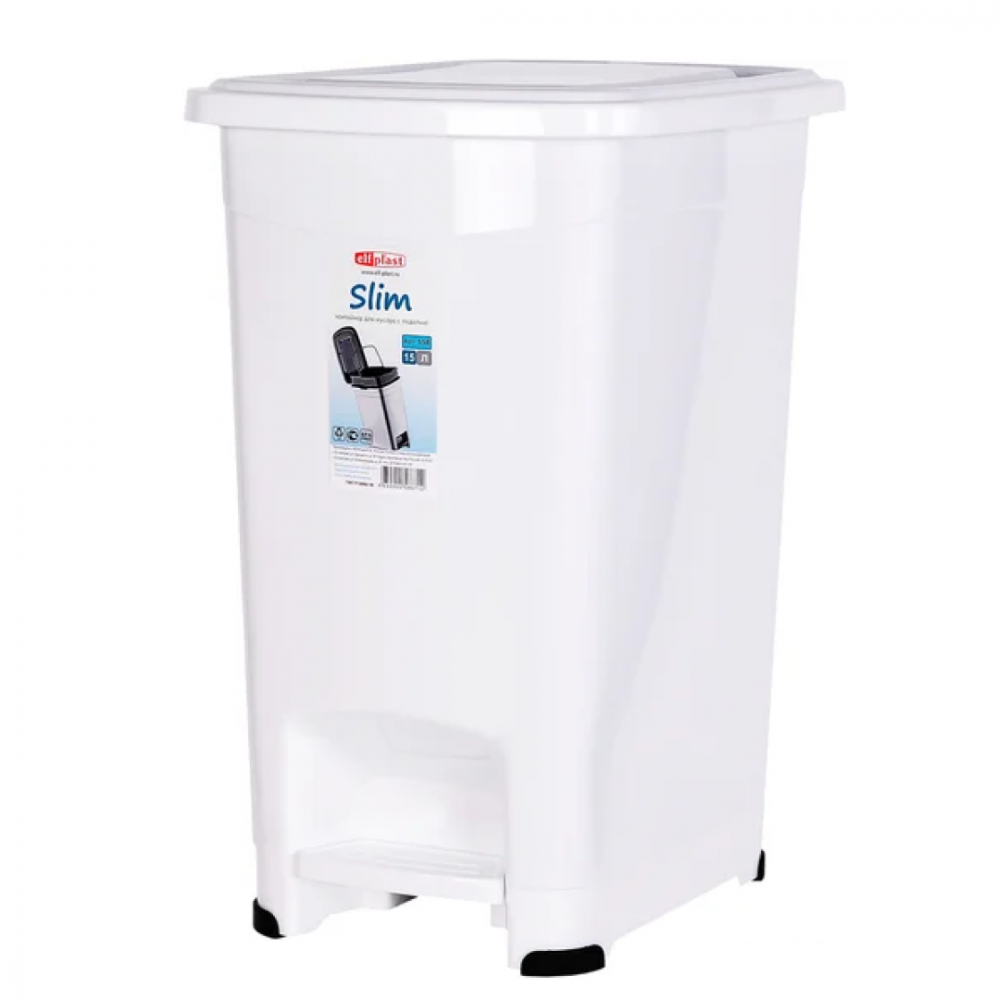 Контейнер оснащён педалью, которая позволяет открывать крышку без контакта руками, обеспечивая более высокий уровень гигиены.