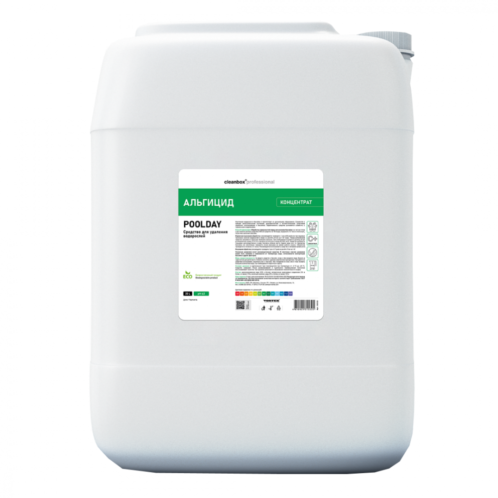 Первичная (шоковая) обработка: рекомендуется проводить 1 раз в 60 дней или при видимых признаках наличия водорослей в воде из расчёта 20 мл на 1 м3 воды. Перед добавлением средства произвести обратную промывку фильтра. При необходимости довести уровень pH до установленной нормы (7,0-7,4) и уровень остаточного хлора (0,3-0,5 мг⁄л). Средство добавлять порциями непосредственно в воду бассейна вблизи места подачи воды или