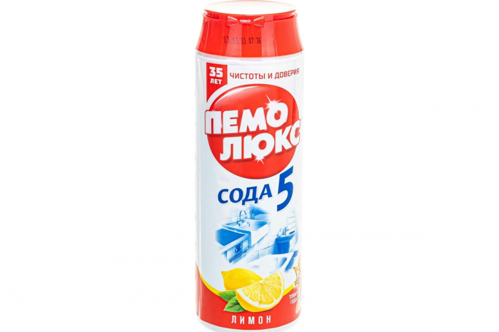 Порошок чистящий «Пемолюкс» Сода 5 с лимоном предназначен для очищения от загрязнений стеклокерамических плит, кухонных столешниц, ванн и раковин, а также керамических, эмалированных, металлических и других твёрдых поверхностей.