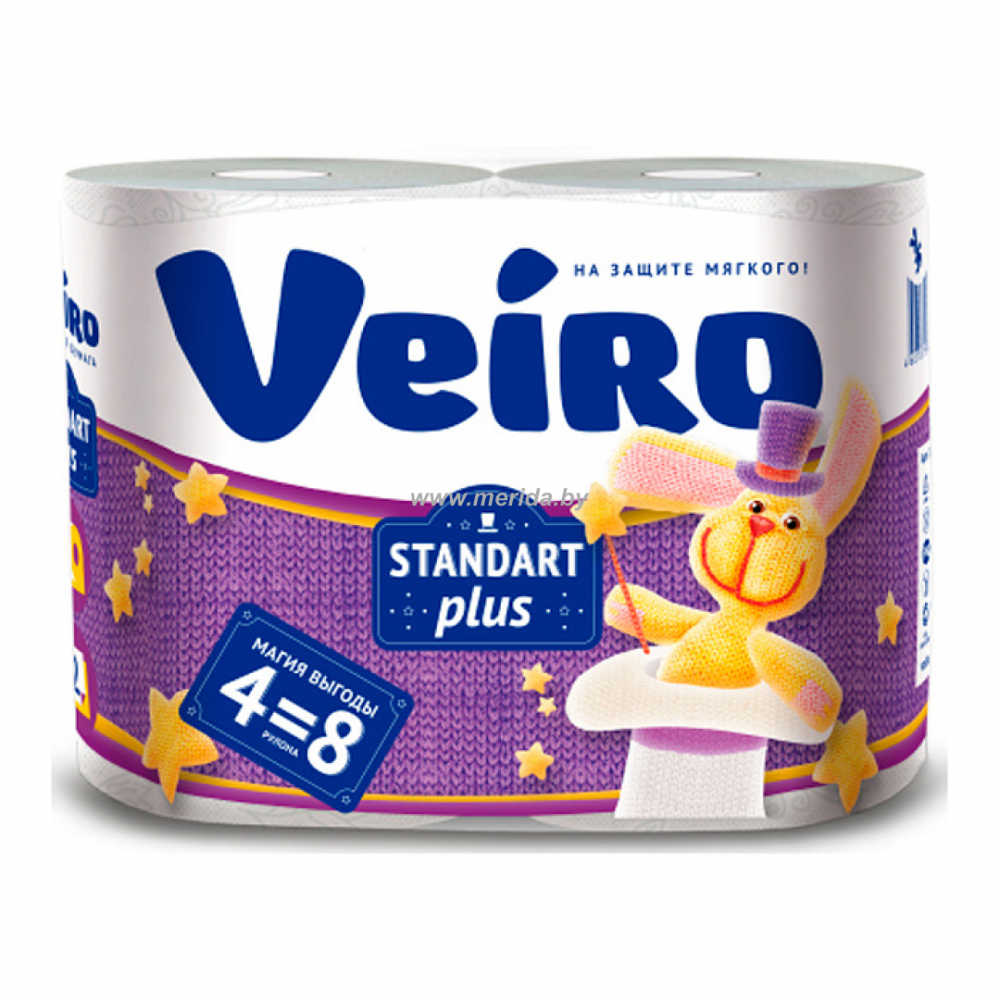 БУМАГА ТУАЛЕТНАЯ VEIRO STANDART PLUS, 2-СЛОЙНАЯ, 4 РУЛ/УП